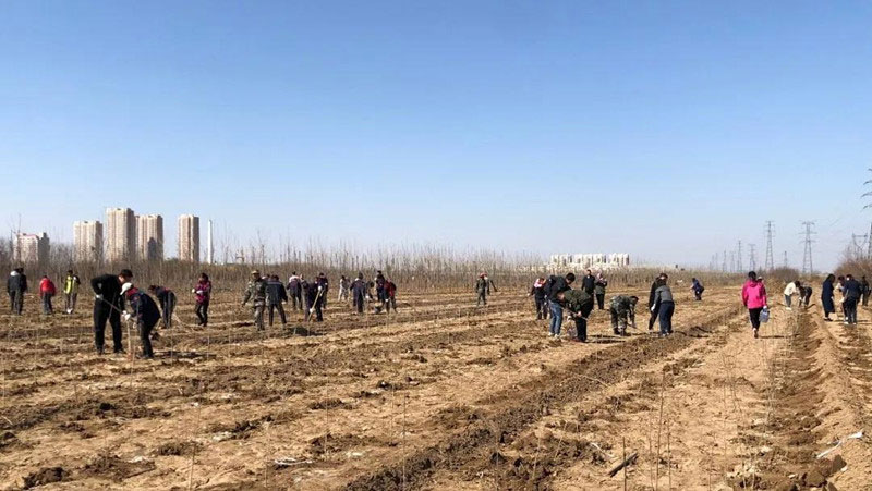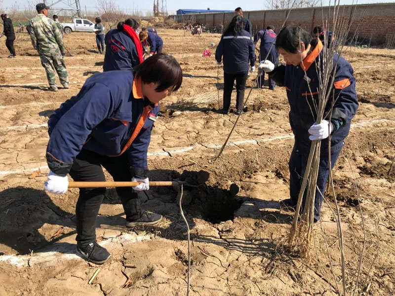 3月9日下午,企业文化部组织开展植树活动,在园林部门同事的协助下,监察部乐虹主任负责后勤接待,园林部门董龙飞、张怡配合工作,园林部门主任张志刚、技术员孟樊成提供专业指导。活动参与人数共近150人。活动第一天有35名同事参与,种植国槐1827棵。此后每周六的下午都有不同部门的同事报名参加植树活动,两周时间,大家种植了5000多棵白蜡树苗。最后一周我们种植了1840棵桃树树苗,植树现场,同事们两两一组,组成植树组合,挖坑、扶苗、填土、踩实,每道工序都做的细致认真、一丝不苟,欢笑声伴着劳作声,不亦乐乎,构成了一幅热火朝天的劳动景象。在大家的通力合作下,植树行动取得了圆满成功,感谢全体植树人员的积极参与。